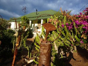 In De Rust in the late afternoon there’s a donkey cart clattering down the main road. A tiny khoisan woman bearing a large pumpkin comes down the hill and tries to sell it to me. She’s lurching a bit, not only from the weight of the pumpkin. There’s a bloke hovering in the background. The pumpkin is the best thing that’s happened for some time, and its probably going to end badly. Slightly unsettled by this reminder of the abject state of our first people, I meet Hermann’s son Thomas and his American grandparents. They like the Klein Karoo, are puzzled by the ‘German speaking brown people’, and have an unnecessary fear of encountering a Cape Cobra.