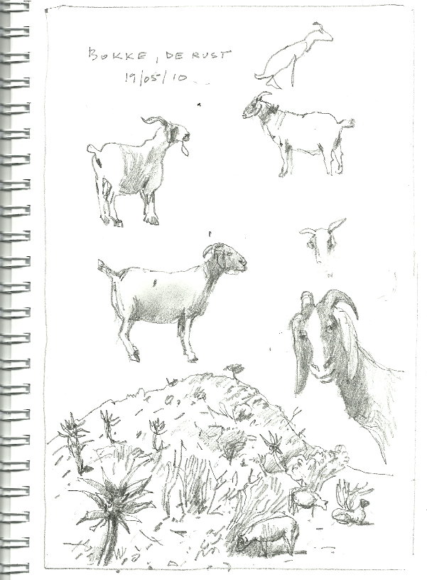 In the afternoon instead of going to the Poort I head out on a farm road and find myself in a kraal with some slightly haughty goats.