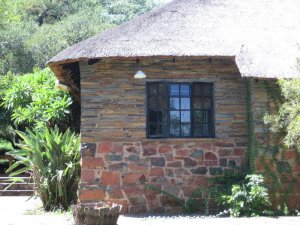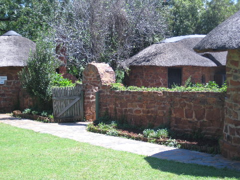 The place is a bit run down and there’s no-one else around. Around the back there’s a courtyard and some rondavels.