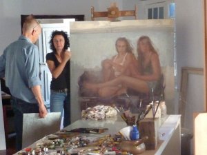 In Franschhoek we stayed with our painter friend Kerri Evans. She first showed at the Everard Read in Jo’burg about 15 years ago, when she was living in India. Her portraits of Indian people were beautifully rendered, exotic and very appealing. The Johannesburgers voted with their cheque books and Evans was on her way.