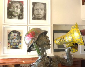 I took a spin to Camps Bay to look at Rose Korber‘s annual Summer Salon, an event that has been on the Cape Town art calender for the past 19 years. At Rose’s fine Camps Bay home you’ll see works by some of our trusty old campaigners (Kentridge, Nhlengethwa, Hodgins, Bell) as well as some newer kids on the block. I admit to a certain bias in favour of my guitar compadre Richard Smith, his quadrangle of works had a certain authority: