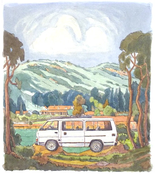 I kept on up the valley and at the end there were many cyclists and a nature reserve. I was too close to the mountain by now, but did this watercolour anyway. Its not very good but hell it was lekker up there in the Autumn sunlight.