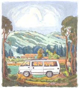 Once, sketching at a taxi rank in the Jo’burg CBD, a man stood behind me and watched me draw. “Eish! You can say that is dangerous!” said he. I never worked out if he meant the drawing or the taxi. But I like the idea of a dangerous drawing. And the thing is, now that these dangerous little vehicles are being replaced by those lumbering high roofed ones, they’ve acquired a certain sentimental value. They’re becoming relics, symbols of an era. Rather like a Pierneef painting.