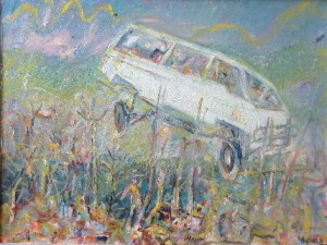 The minibus is not known for its respect for the rules of the road. To your average whitey, the minibus represents the End of The World As We Know It. Over the years, I’ve rendered a few of them. Initially it was a way of neutralising an irritant. (Painting can do this, for the artist and the viewer.) Later it became another little pathway to acceptance. In the Fordsburg studio though, the din from the hooting taxi could stretch your tolerance. Torrents of abuse would flow from the balcony onto Main Street. Sometimes the artists were known to flick paint from their brushes onto the offenders below.