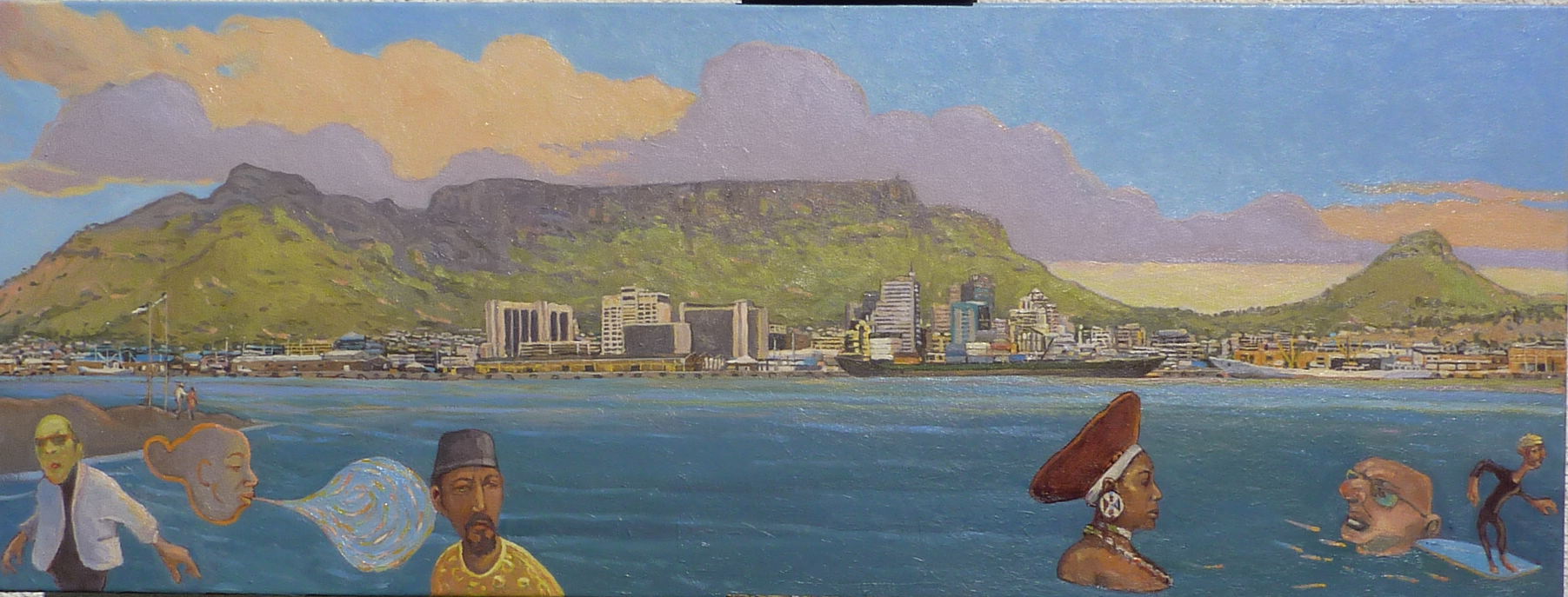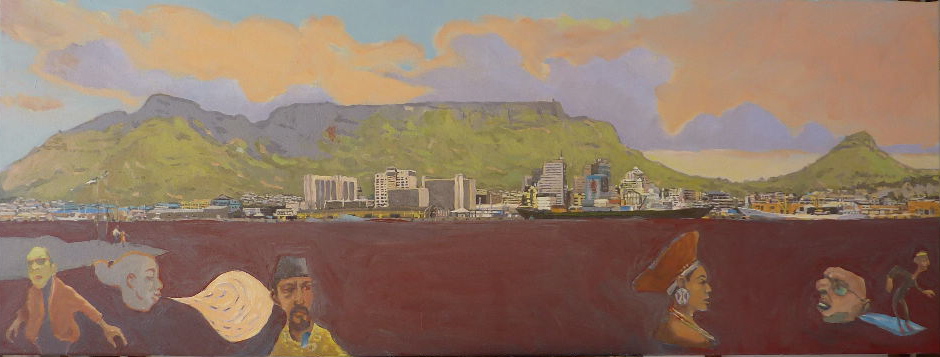 I reckon these pines, the ones in the Pierneef, once extended closer to Table Mountain and have since been cut back or burnt. And of course there’s the cable car enclosure – an extra bit of concrete peak – when did that get built?